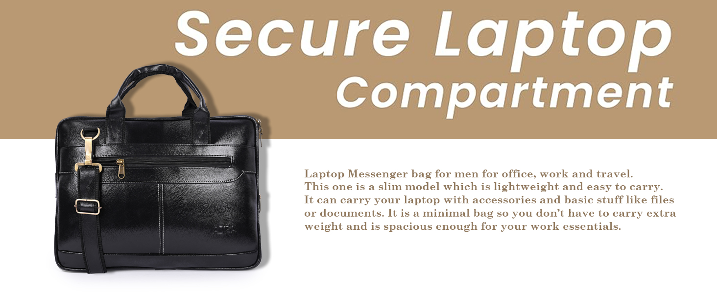 Laptop Messenger bag for men for office, work and travel. This one is a slim model which is lightweight and easy to carry. It can carry your laptop with accessories and basic stuff like files or documents. You don’t have to carry extra weight and is spacious enough for your work essentials.