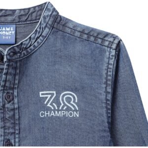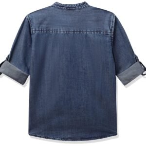 Amazon Brand – Symbol Boys 100% Cotton Mandarin Denim Shirt | Full Sleeves | Regular Fit | Age 2-14 Years
