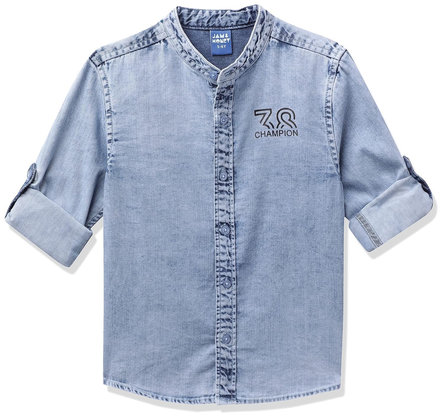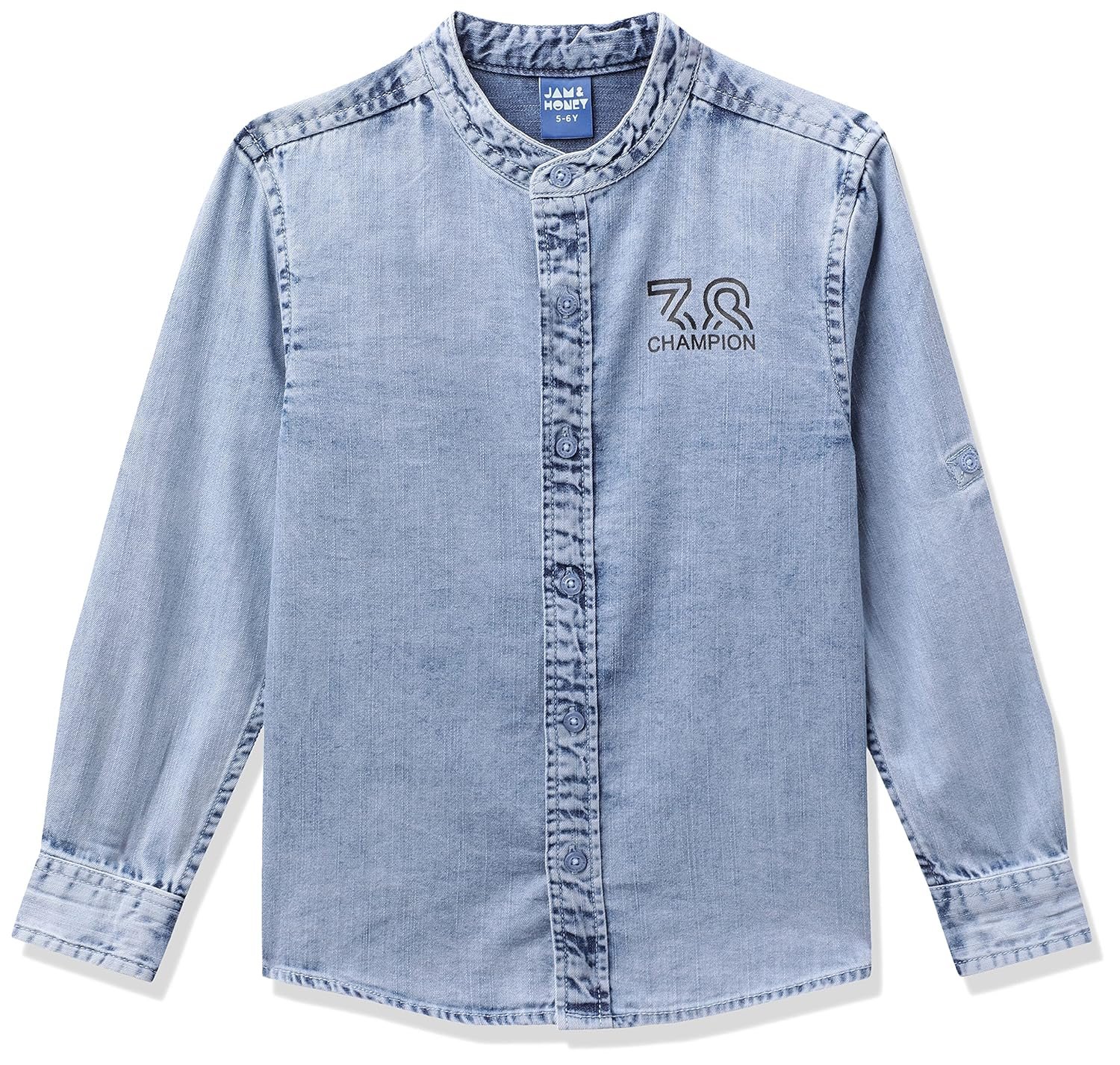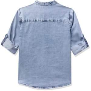 Amazon Brand – Symbol Boys 100% Cotton Mandarin Denim Shirt | Full Sleeves | Regular Fit | Age 2-14 Years