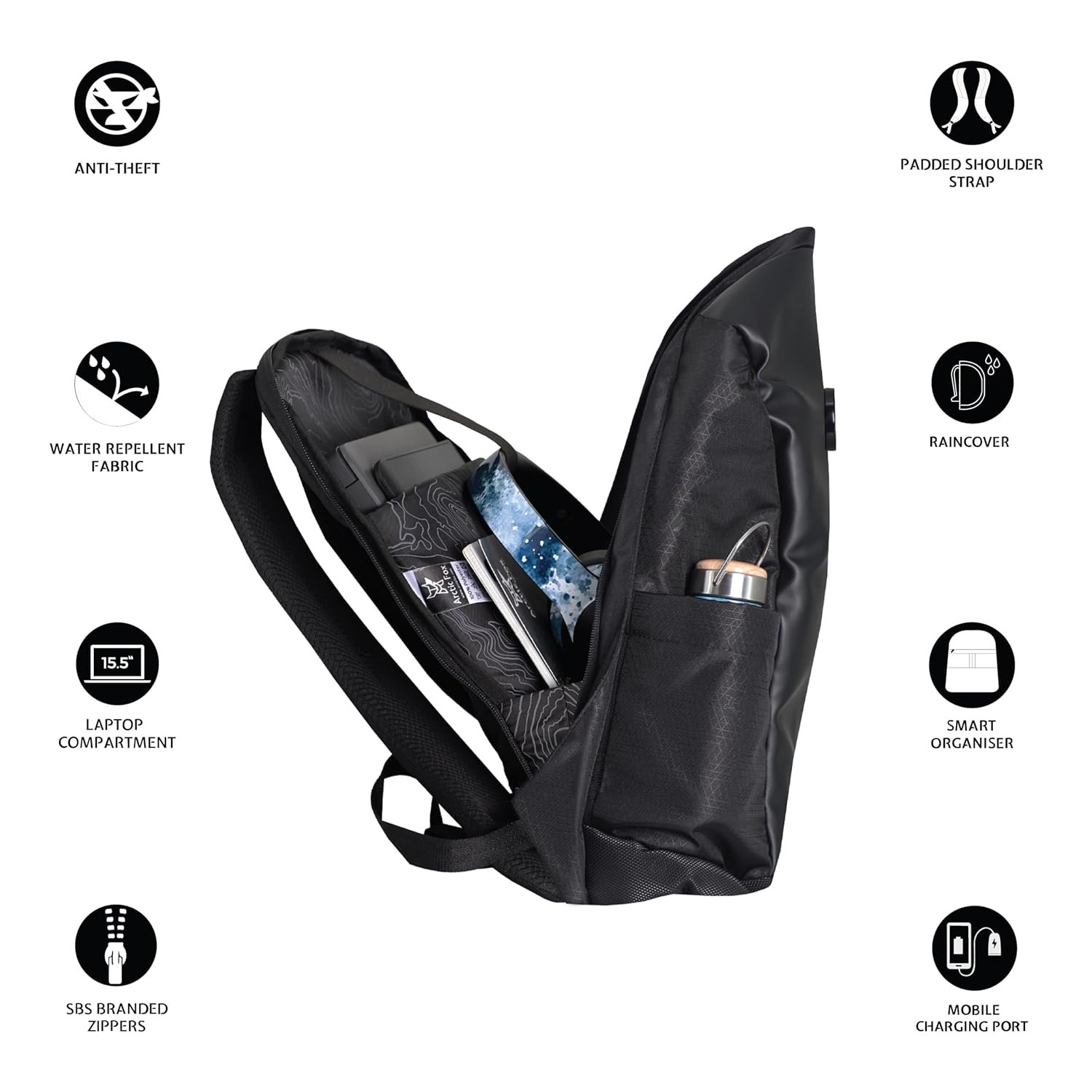Arctic Fox Slope Anti-Theft Backpack | 23 Ltr Capacity|Water Resistant | Multipurpose Backpack |Rain Cover| Trolley sleeve 15.6 Inches Unisex Laptop Bag with USB Charging Port