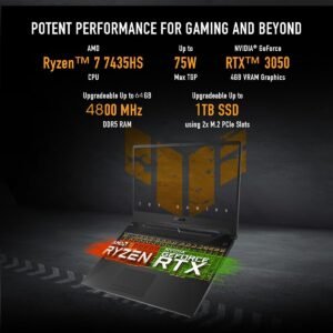 Processor : AMD Ryzen 7 7435HS Mobile Processor 3.1GHz (20MB Cache, up to 4.5 GHz, 8 cores, 16 Threads)