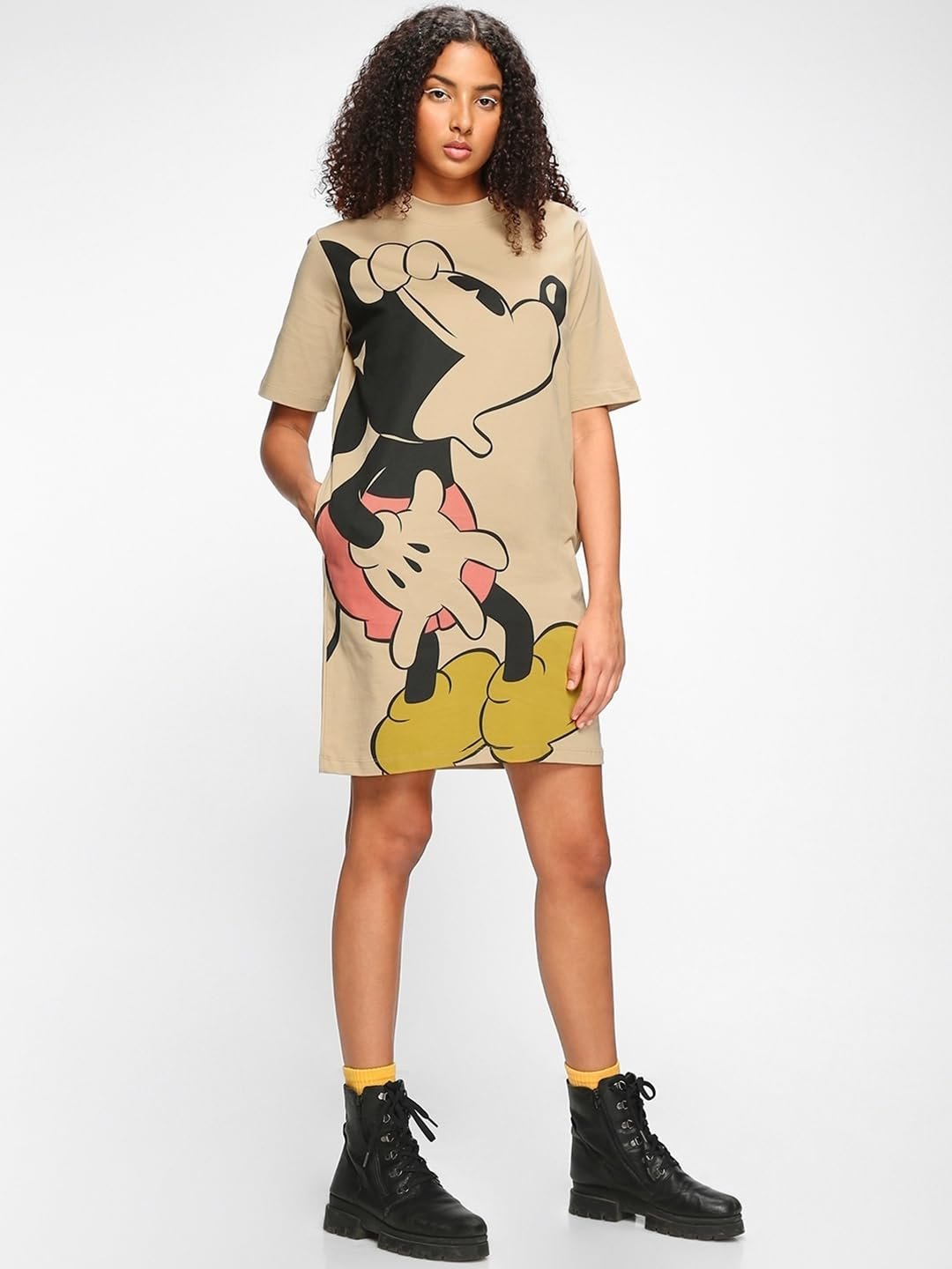 Amplify your casual style with this Mickey Logo Women’s Black Graphic Printed Oversized T-Shirt Dress. Team this Official Disney dress with sneakers and a waist bag for a modish vibe.