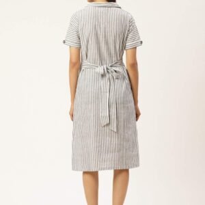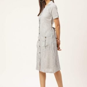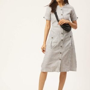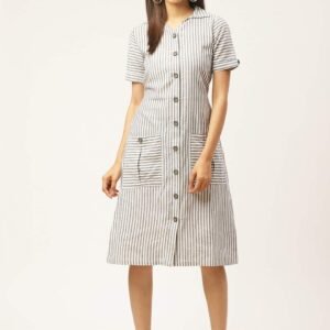 Be the first to review “Cottinfab Women Off-White & Black Striped Shirt Dress”