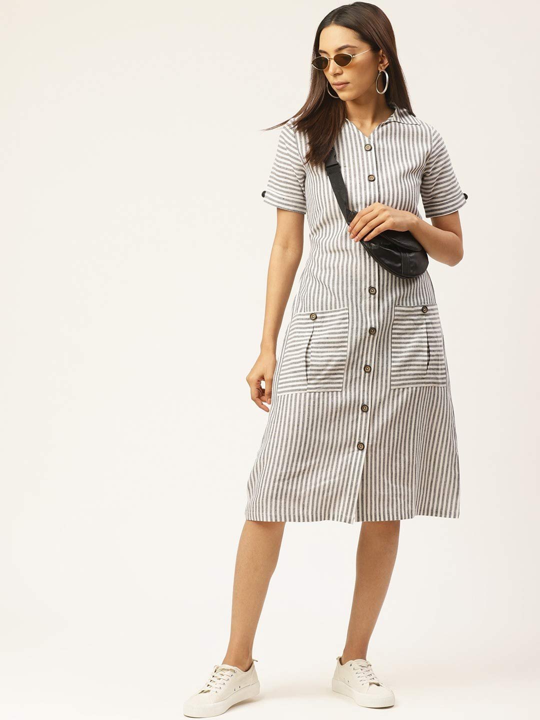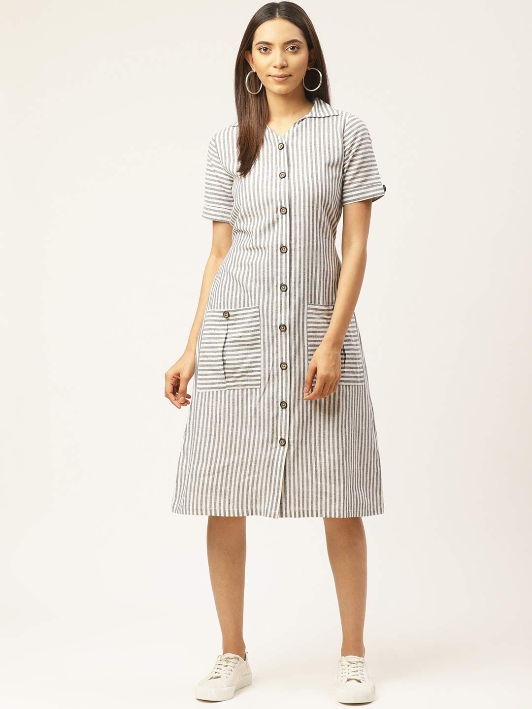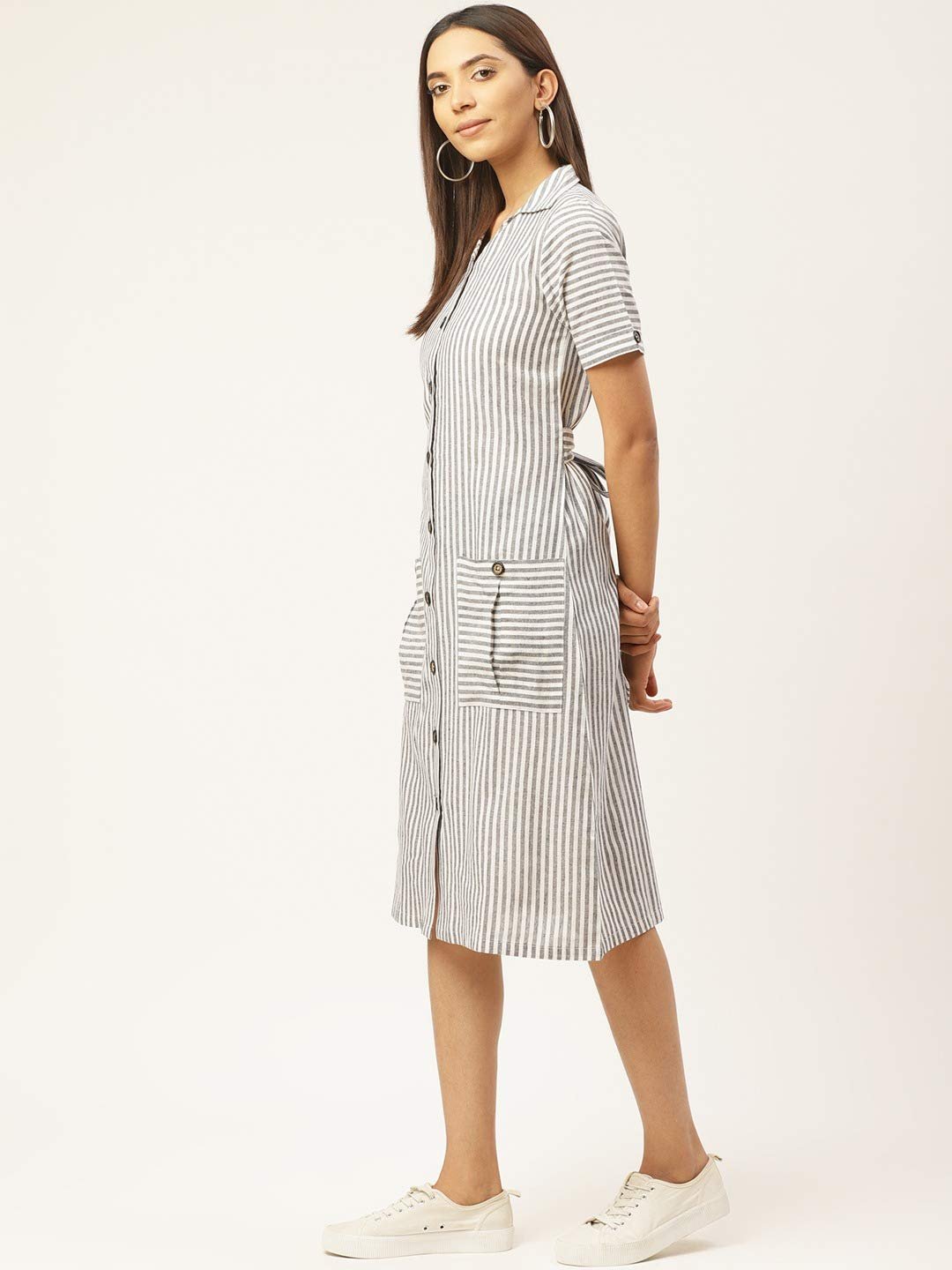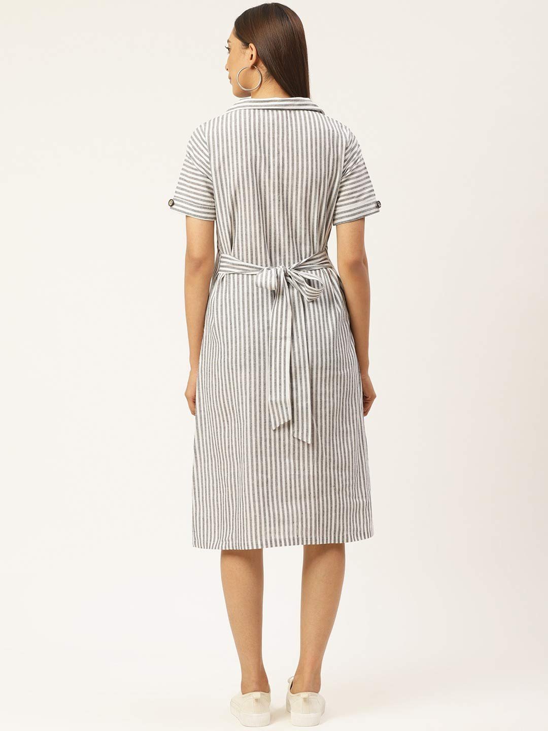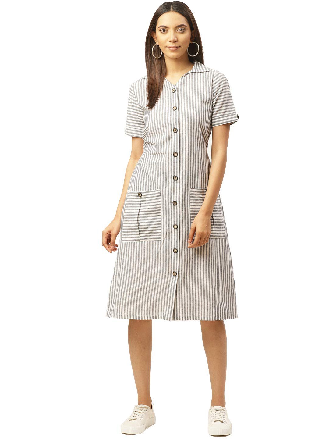 Cottinfab Women Off-White & Black Striped Shirt Dress Cottinfab Women Off-White &#03...