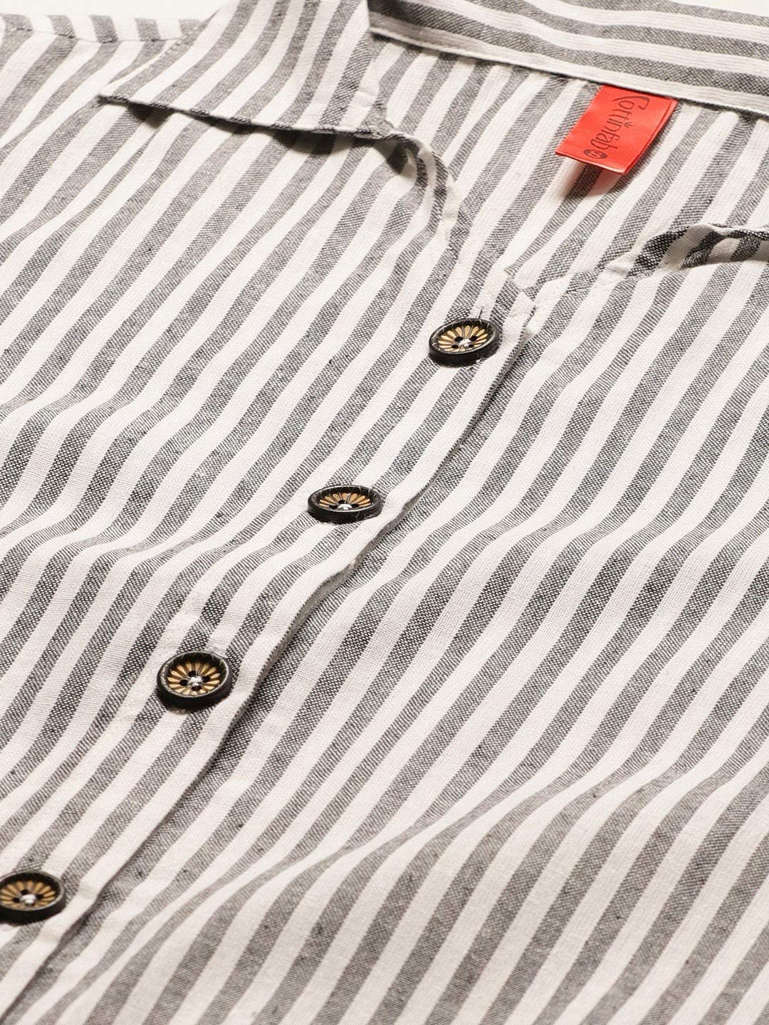 Cottinfab Women Off-White & Black Striped Shirt Dress