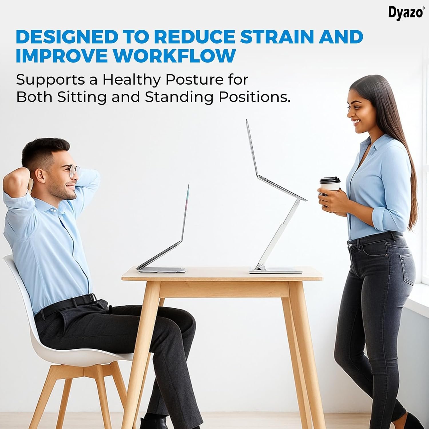 360° Rotating Base for Versatile Viewing – The Dyazo laptop stand features a smooth 360 degree swivel base, allowing effortless rotation for seamless multitasking, collaboration or adjusting screen angles for optimal ergonomics.