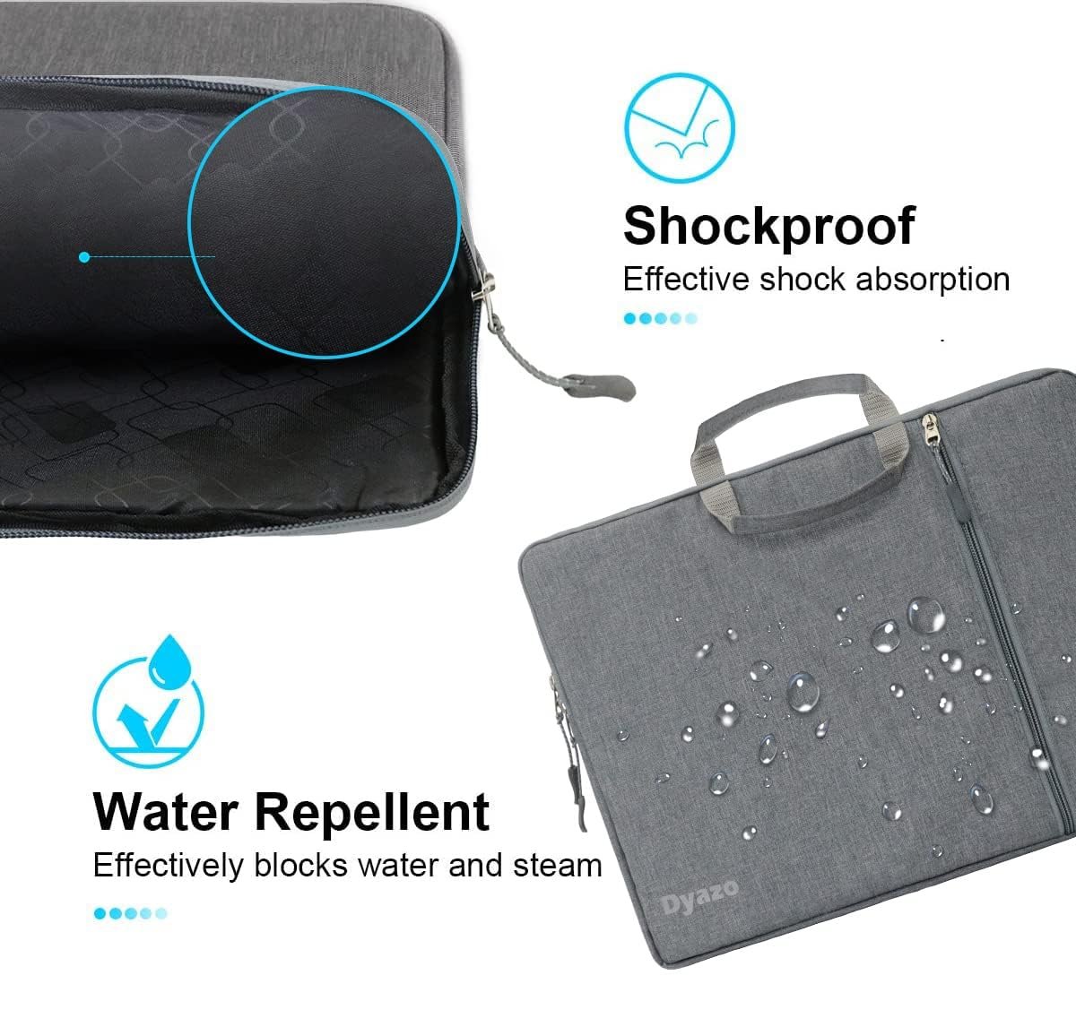 High-Quality and durable Material: This DYAZO 15.6 Inch water resistant Laptop Sleeve is made of High Grade material and good quality zipper, Thee inner material which is soft, shock absorbing, padded design to prevent jerks, vibration and damage to the laptop.
