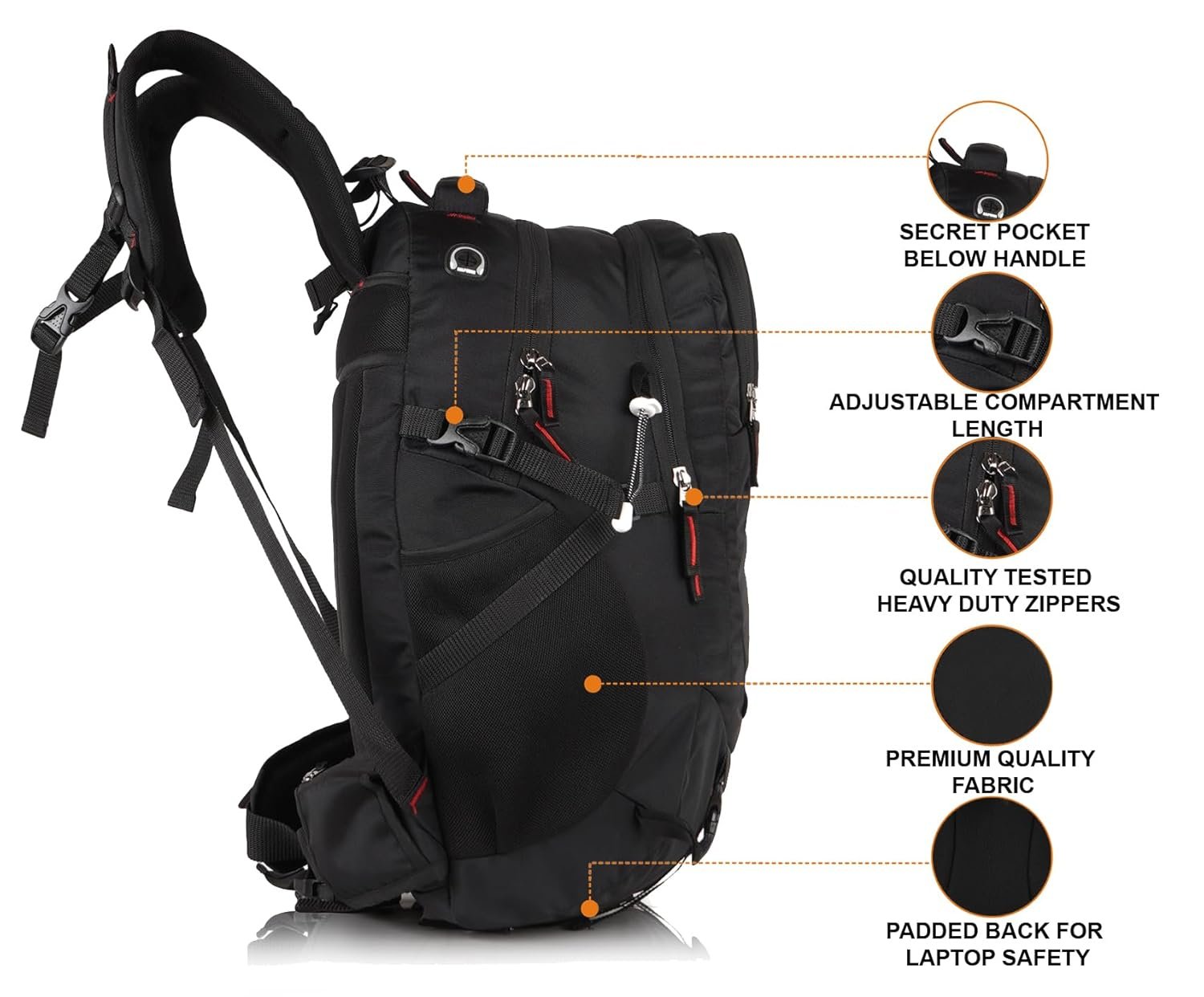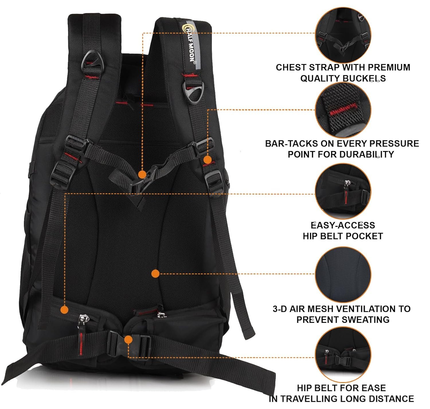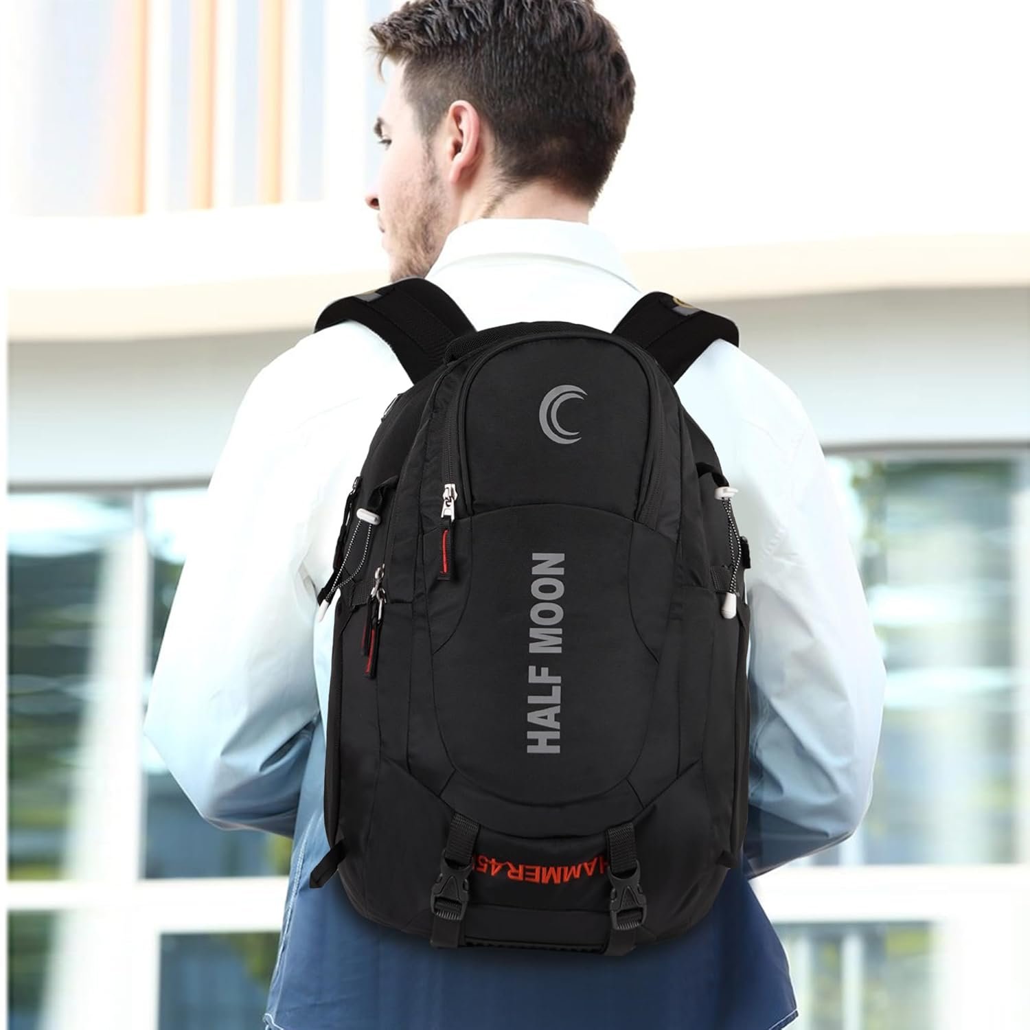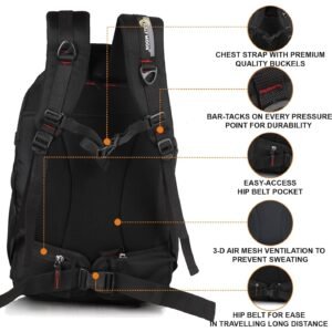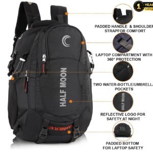 Half Moon 45L Hammer Waterproof Rucksack | With 17.3″ Laptop Compartment & Rain Cover | For Trekking, Hiking, Travel, For Men & Women