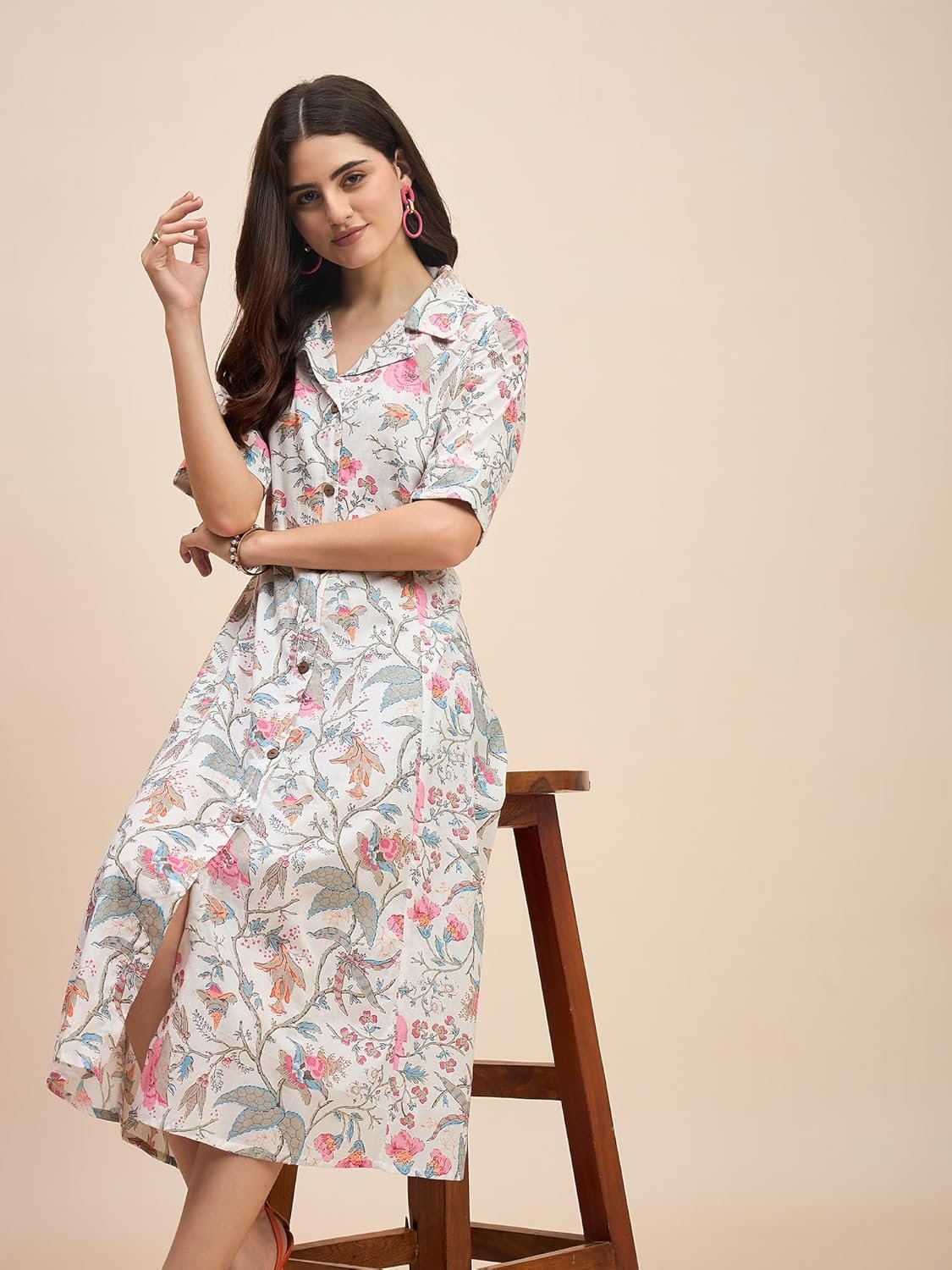 Kritanjya Western Dress || Cotton Solid Button Front Shirt Dress for Women || Roll Tab Sleeve & Collared Neck Flared Dress || Office || Summer Short Dresses for Women Kritanjya Western Dress || Cot...