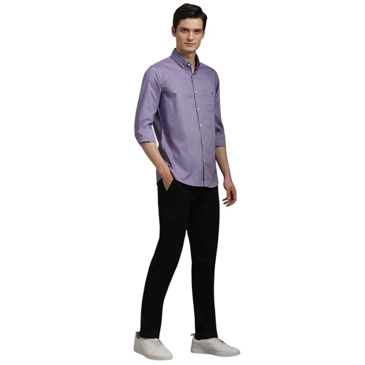 Louis Philippe Men’s Easy to Care Cotton Slim fit Solid Casual Shirt with Natural Stretch