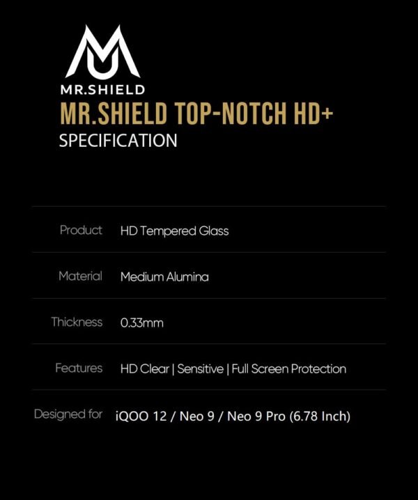 Mr.Shield Top-Notch HD+ Tempered Glass Screen Protector Guard for iQOO 12 / Neo 9 / Neo 9 Pro (6.78 Inch), 9H Hardness, Military Grade Protection, Easy Installation kit