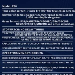 New World X80 Hand Video Games Console Handheld Game Player 7 Inch Full-Color Disply Games TV Output 8 Emulator Support PS1 New World X80 Hand Video Games...