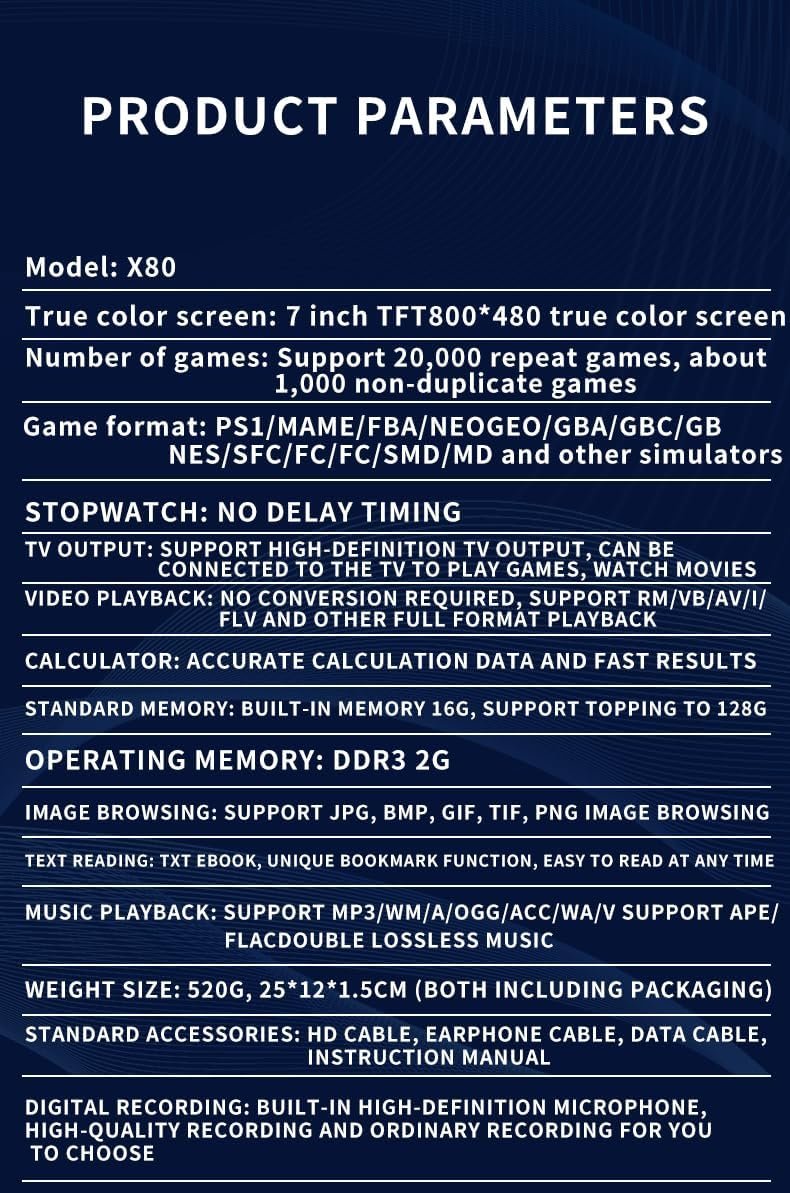 New World X80 Hand Video Games Console Handheld Game Player 7 Inch Full-Color Disply Games TV Output 8 Emulator Support PS1