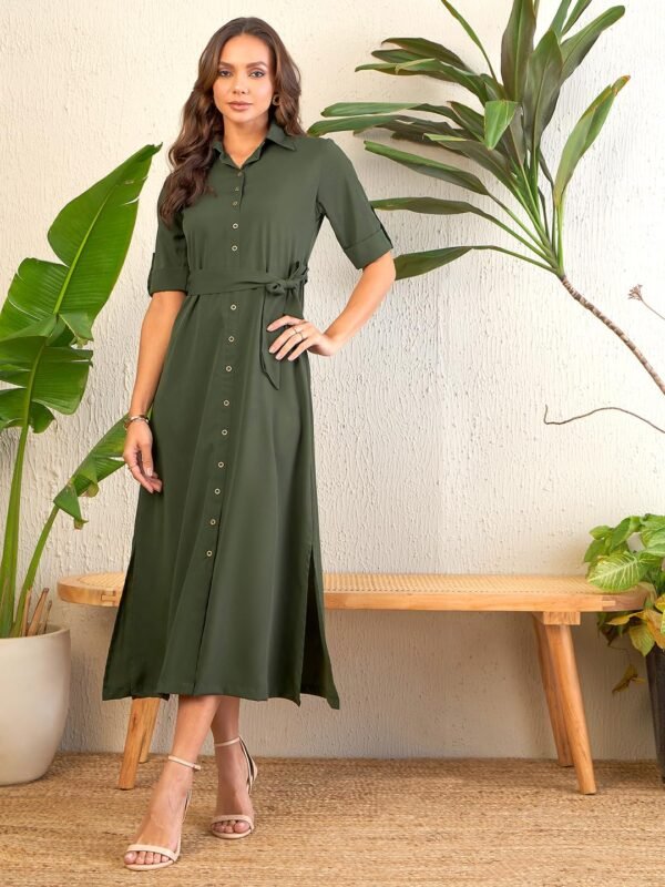 Customers find the dress excellent in quality and appreciate its versatility in styling, with one noting it looks like an expensive piece. The dress receives positive feedback for its fit, comfort, and value for money, while customers like its color and find it suitable for both casual and regular wear. The fabric quality receives mixed reviews, with some praising the crepe material while others note it doesn’t match the description.