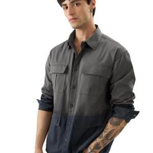 The Souled Store Blue Bonnet Men and Boys Long Sleeves Collared Neck Buttoned Front Regular Fit Cotton Utility Shirts